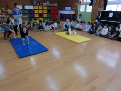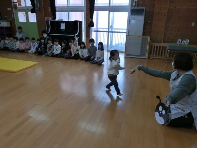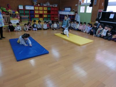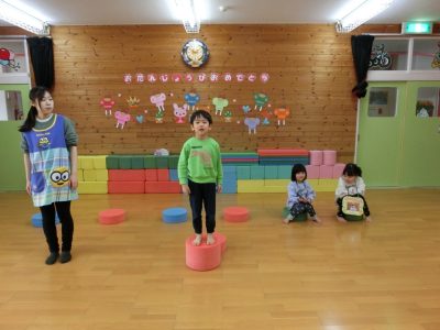 「かえるの体操1、2、3」上手に踊れました!