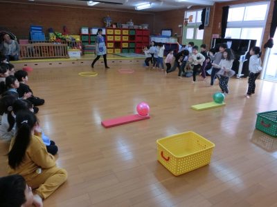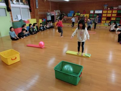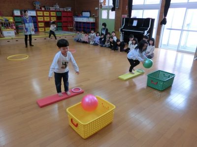 みんな上手にかごにボールを入れることが出来ました!