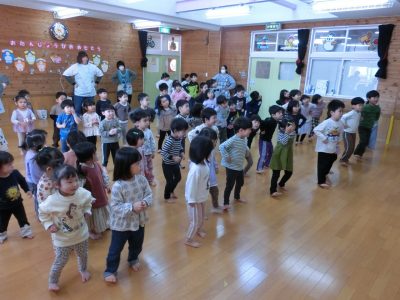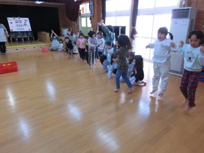ゲームの前に体操「にんげんっていいな」を踊りました!